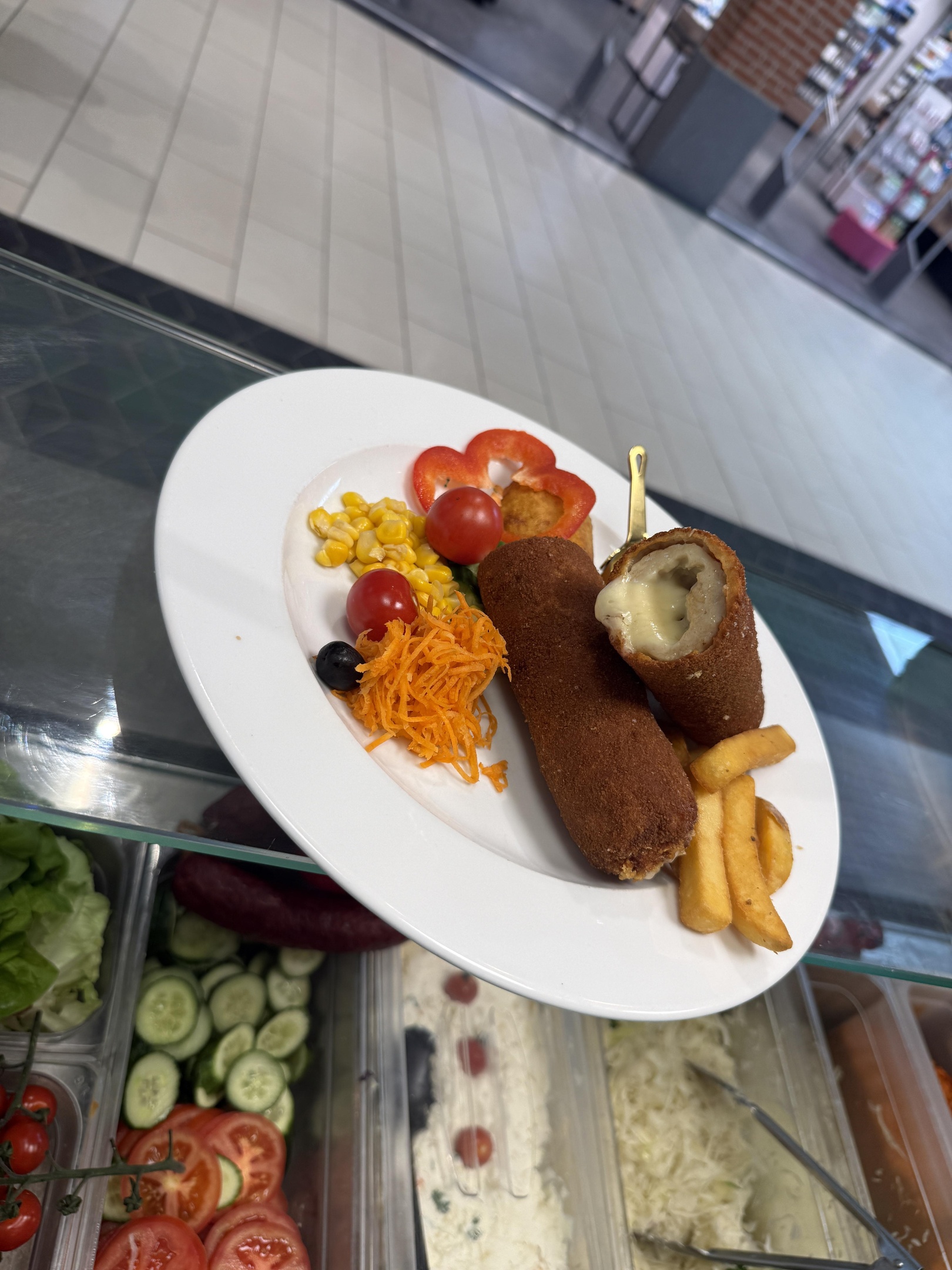 •Grillad korv med pommes & ajvar•Skånsk kalops med kokt potatis |